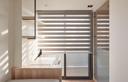 在小户型的设计过程中,首选材料是玻璃,特别是吊柜中玻璃边框的运用,非常有现代感。