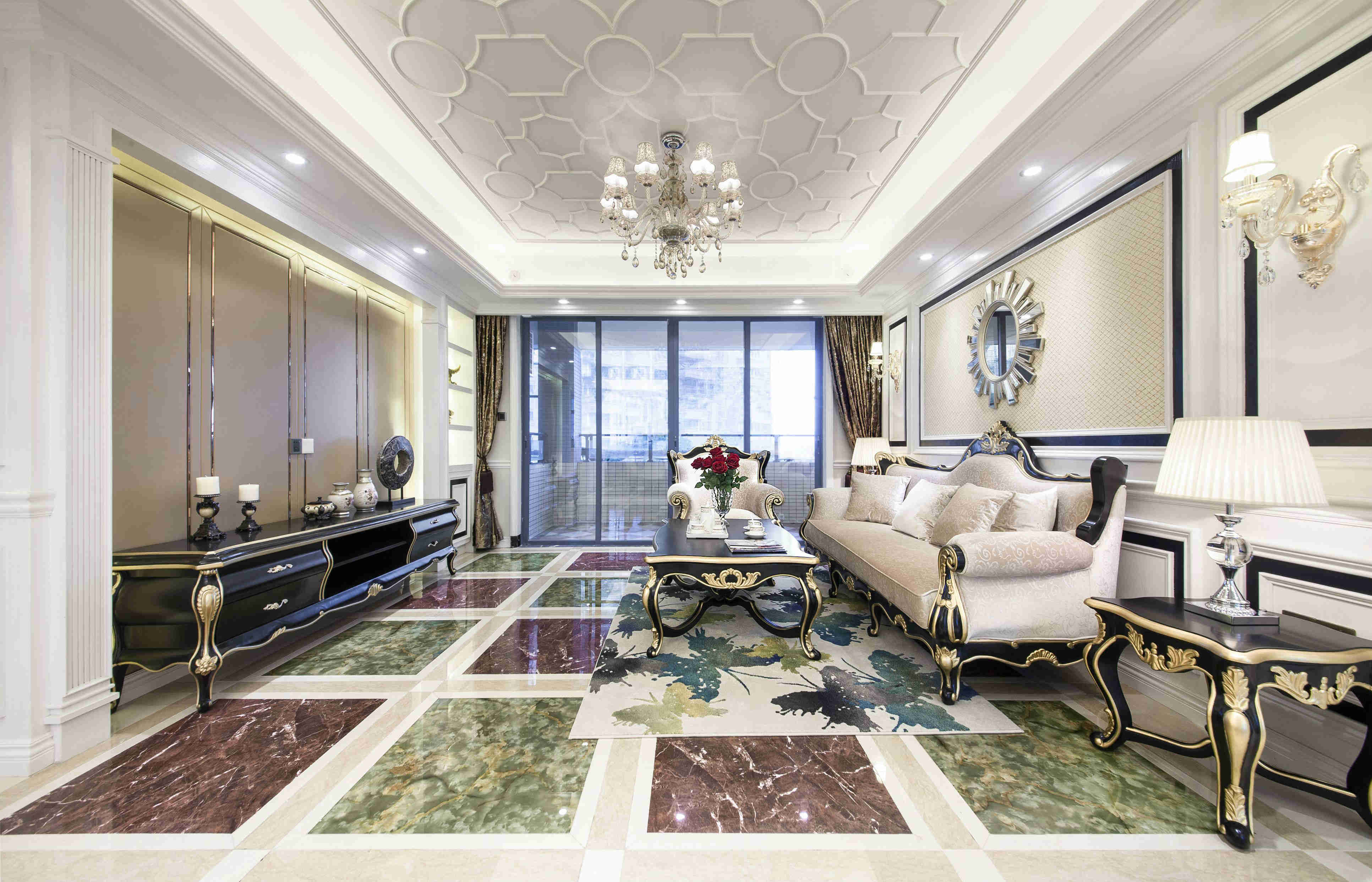 7、地面颜色一般应在明度上低于墙面色,纯度也不宜高,这样具有稳定的视觉效果。